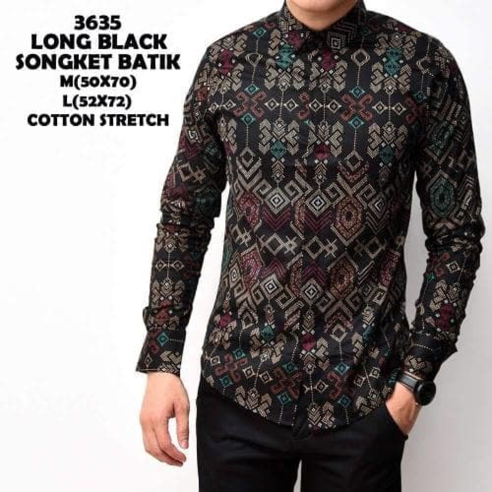 Kemeja Batik Songket Pria Black Panjang Kantor Slimfit Baju Batik
